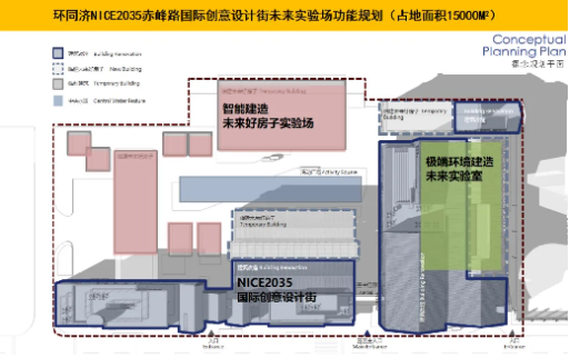 The NICE2035 Chifeng Road Organic Renewal pilot zone's future experimental field comprises three main sections: the Future Laboratory for Extreme Environment Construction, the Intelligent Construction Future Good House Experimental Field, and the Chifeng Road Future Prototype Street.